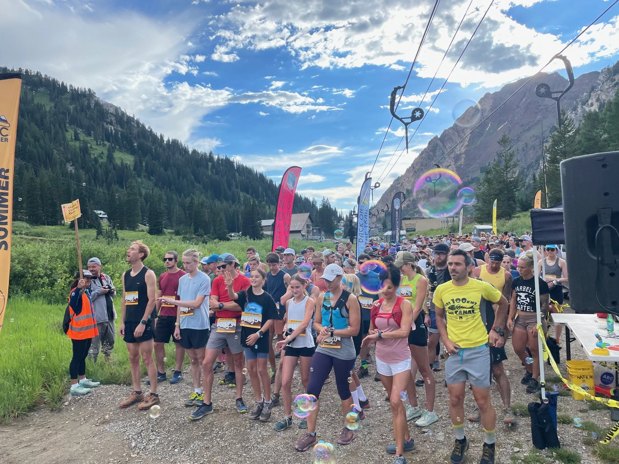 Short Course: Start/Finish at Alta Town Park. Start by running the dirt road towards the parking lot where you parked, run into and complete a loop in the parking lot (not shown in above map) to thin out the pack before entering the single track. After your leave the parking lot you’ll turn right up past the skier services building and left turn onto the Lower Albion Basin Trail. This trail is about 2-3 people wide providing opportunities to pass. If you’re gonna make a move, make it here. You’ll then turn right and up Snake Pit. The climb to the wildflowers begins. Make sure to peak over the ledge to see the cool waterfall. A ways up you’ll merge into the Home Run Trail . At Alf’s restaurant you’ll you’ll follow the construction detour up to the left on the dirt road. At just over 2 miles the Short & Long Course split. At the split, you’ll cross the road (look both ways as there is vehicular traffic) and continue on the double track over towards the ski lift base. You’ll then turnleft onto Catherine’s Pass Trail. It’s all downhill from here Baby! Take in the views. After crossing the dirt road (look both ways as there are autos on this road) you’ll hit the switchbacks that should be laden with Wildflowers. At the bottom of the switchback turn right onto and down the Albion Basin Trail. A ways down turn left on and over to Snake Pit. You’ll now retrace your steps back to the start. Be courteous and Safe in this section as the single track is narrow with some steep ledges. At the bottom hang a left back onto the Lower Albion Basin Trail and meander….. I mean sprint back to Finish at the Town Park. All Done! Time to BBQ and reflect on tonight’s effort, the beautiful environment, and all things in your life that you are Thankful For!
